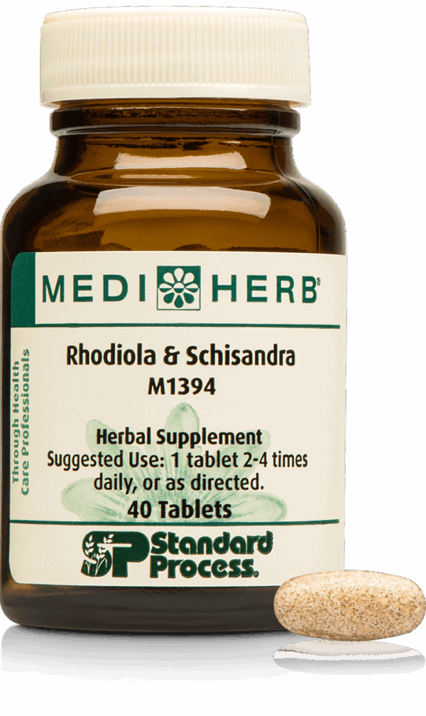 This combination of Rhodiola and Schisandra contains many compounds including phenylpropanoids such as rosarin, rosavin and rosin (rosavins), salidroside (a hydroxyphenethyl glucoside), and dibenzocyclooctene lignans including schisandrin. This product is standardized to contain 4.5 mg of rosavins and 1.5 mg of salidroside per tablet to ensure optimal strength and quality. Together these herbs and the substances within them combine to: